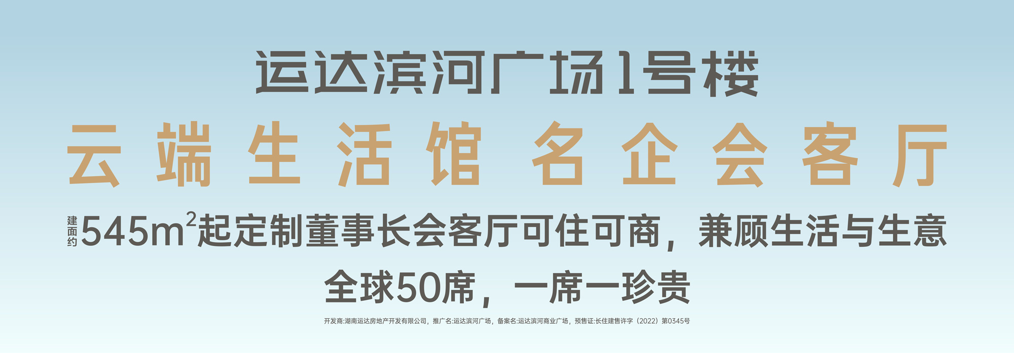 运达滨河广场是由湖南运达房地产开发有限公司倾力打造的又一高端人居力作。项目雄踞高铁会展新城核心地段,总建面约26万㎡,由10栋花园洋房、4栋高层住宅、1栋超高层商业住宅和2个公园组成纯居住花园社区,为业主打造高品质、高品位、优环境的美好生活。
